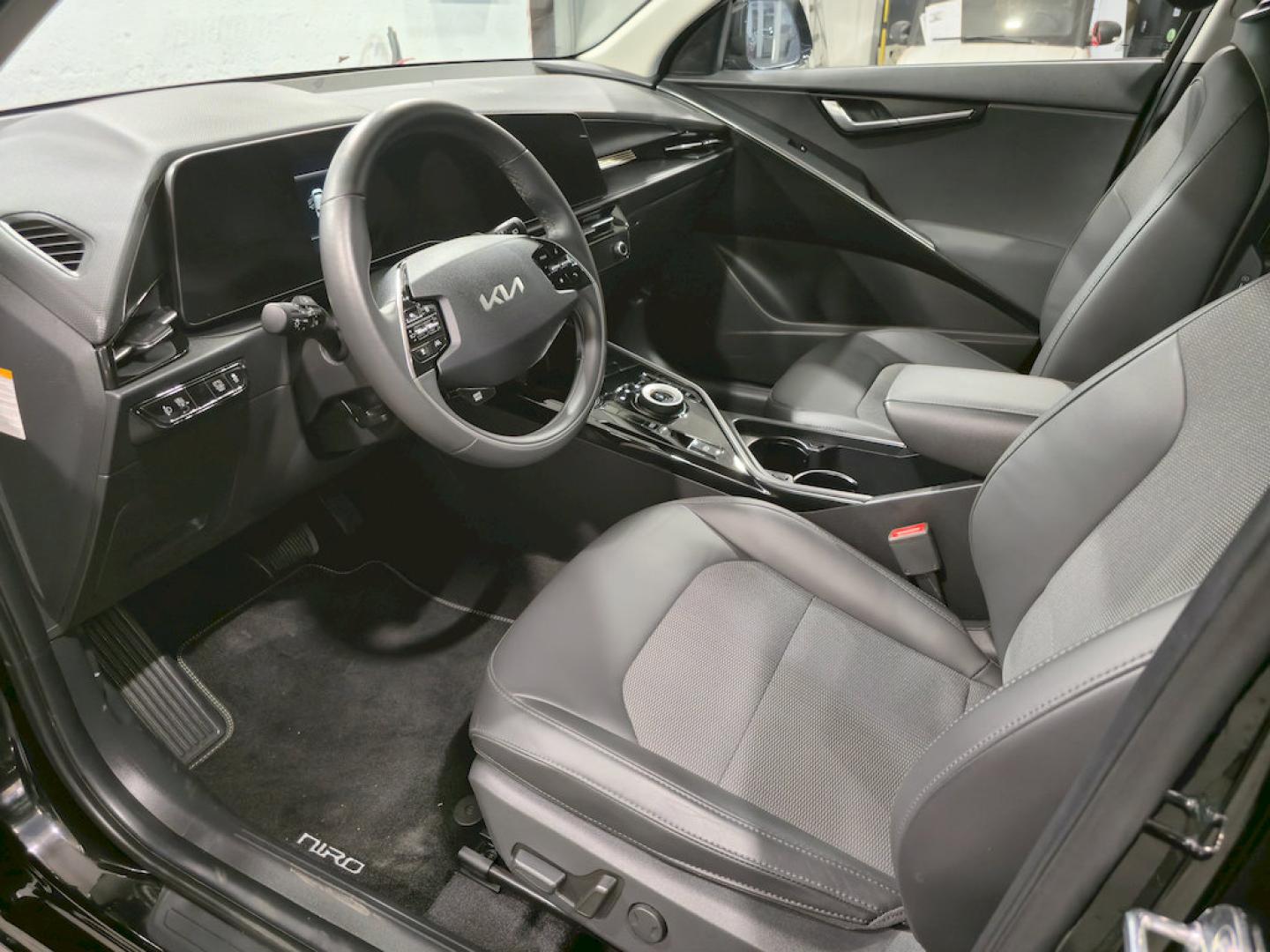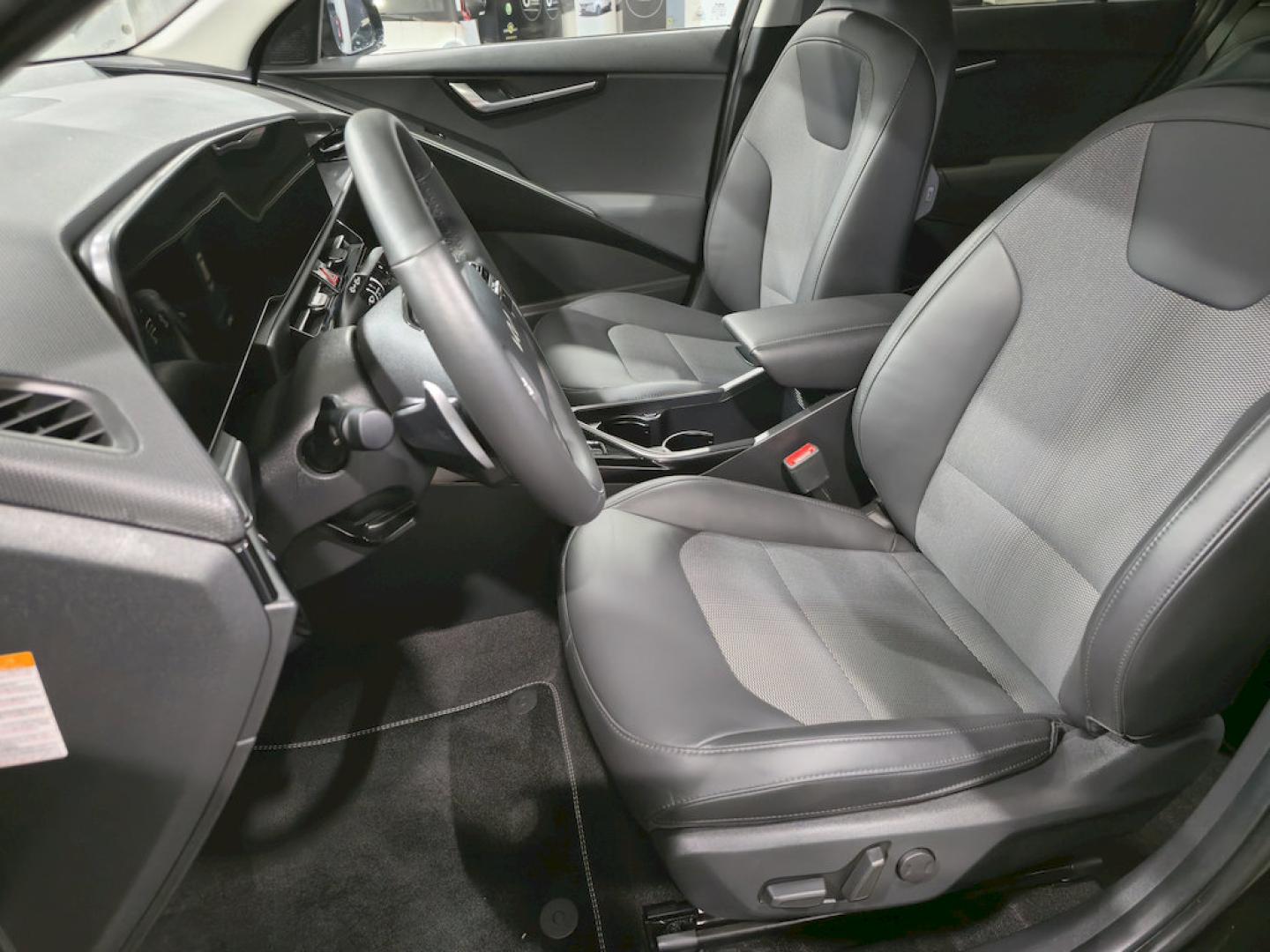 - Asientos de tela (material principal) y de cuero sintético (material secundario)
